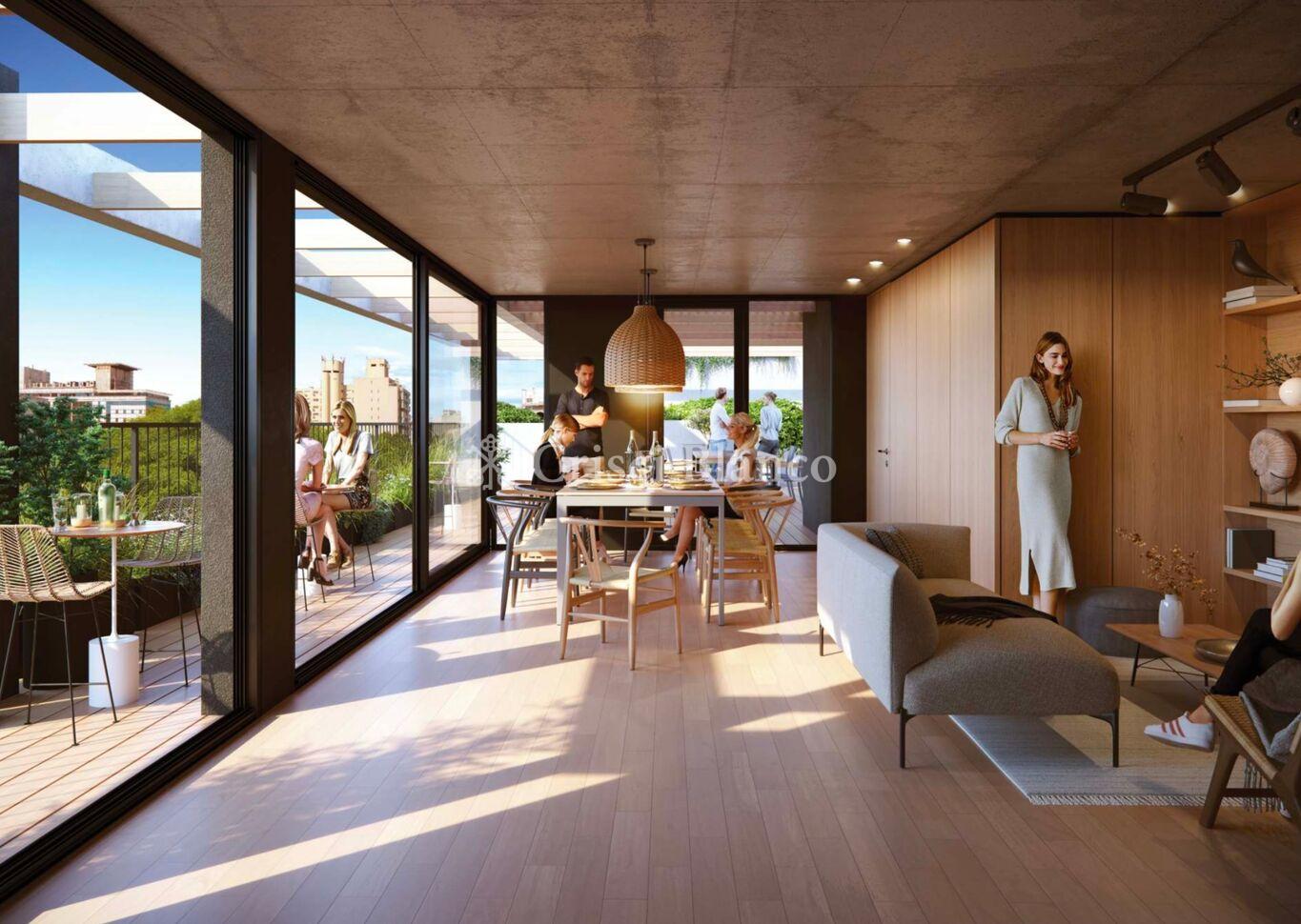 Acceso con cerradura inteligente. Hall de ingreso. Living comedor amplio y luminoso con acceso a terraza al frente. Cocina integrada. Previsión para lavasecarropas.