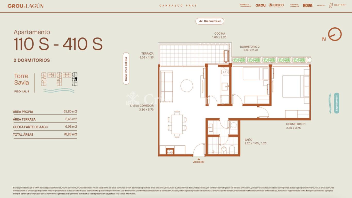 63 m2 internos y 8,45 m2 de terraza.