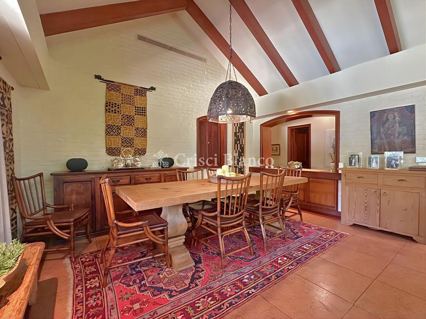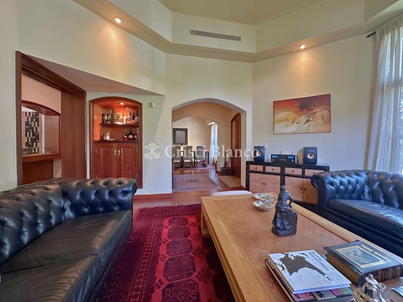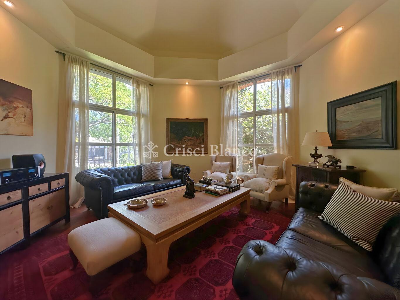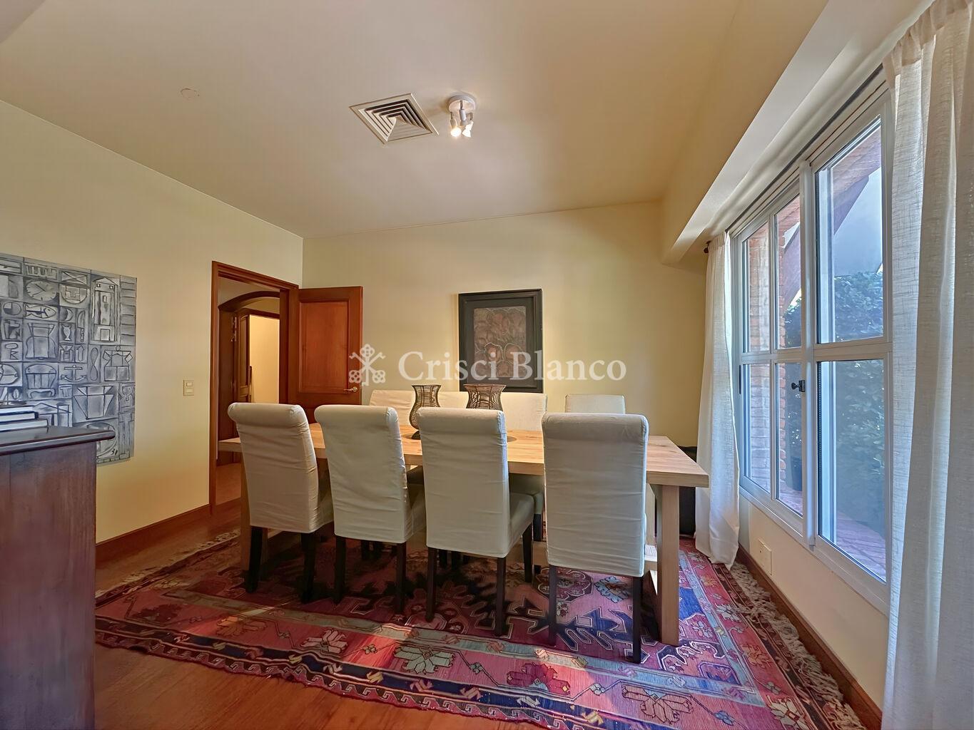 Al ingresar, un elegante hall de recepción da paso a un amplio living formal al frente, muy luminoso, y hacia el otro lado un comedor independiente.