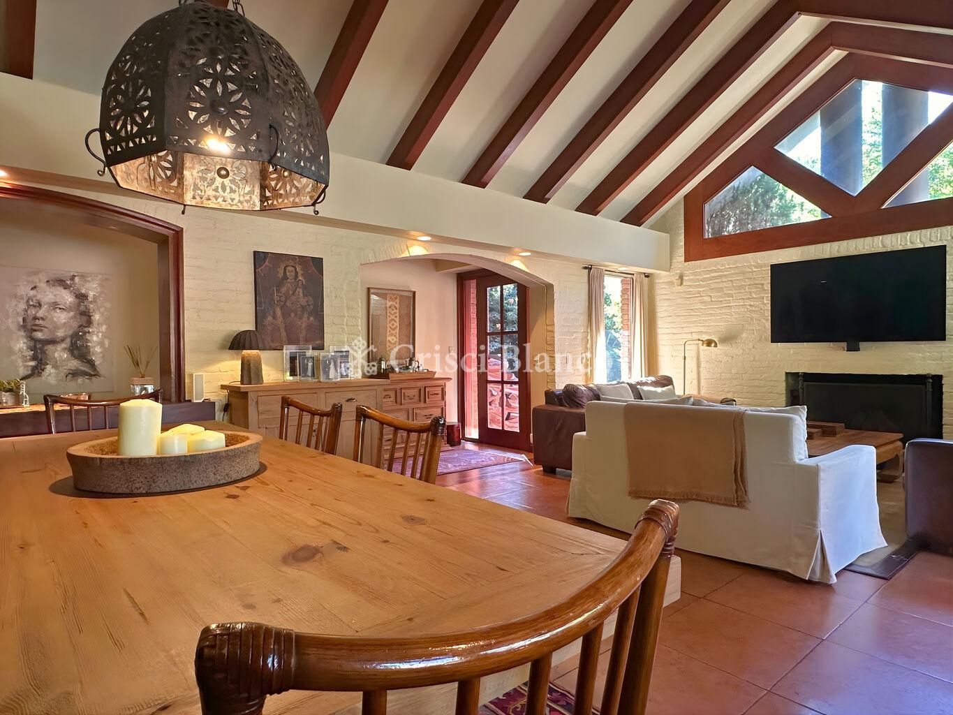 Hacia el fondo un gran estar diario con comedor; estufa a leña tradicional y salida directa a galería techada. Baño social.