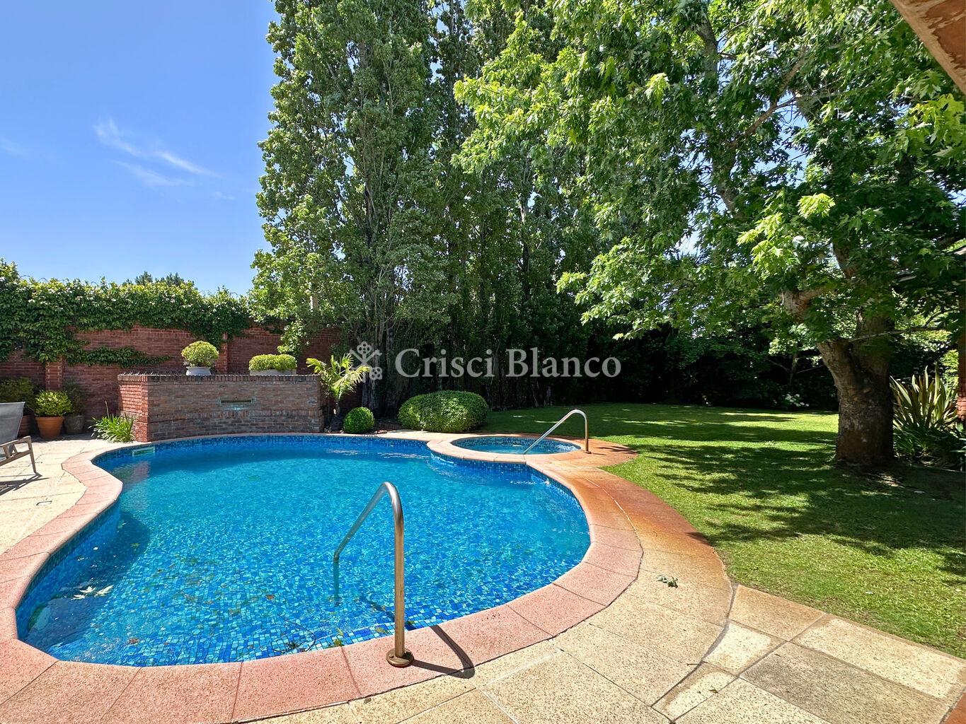 Espectacular jardín con gran asoleamiento. Parrillero techado y baño completo, jacuzzi, piscina climatizada y sistema de riego automático.