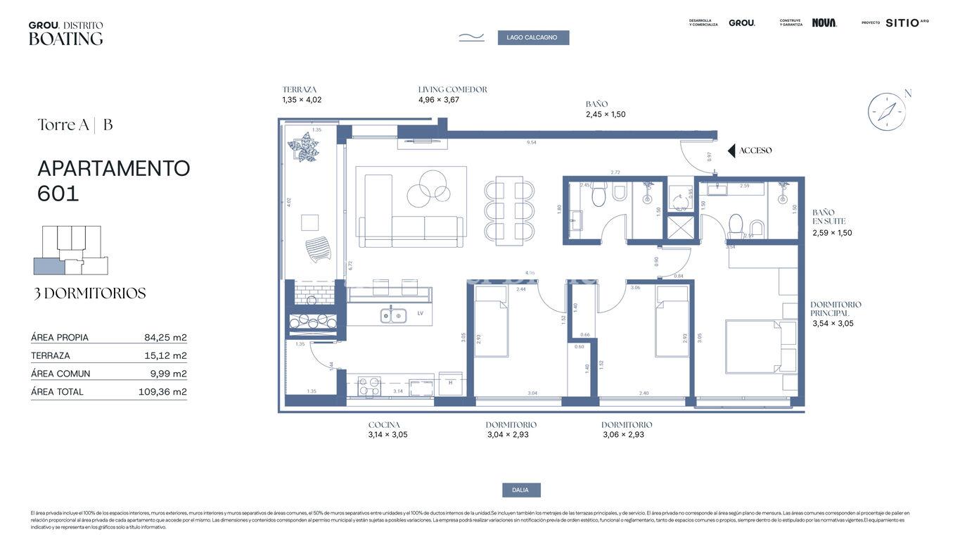 84 m2 internos y 15 m2 de terrazas.
