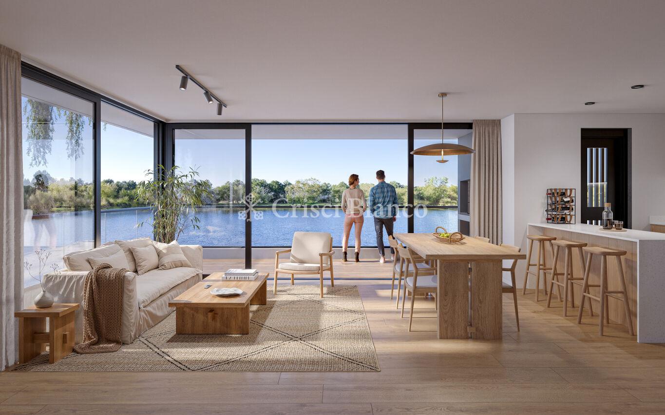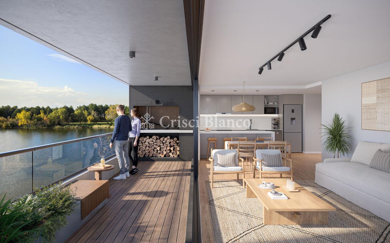 Apartamentos de 1, 2 y 3 dormitorios, con vistas abiertas frente al lago con playa privada y paseo costero, en un área de casi 11.000 m2, acompañado de un cuidado proyecto paisajístico y amplios espacios comunes.