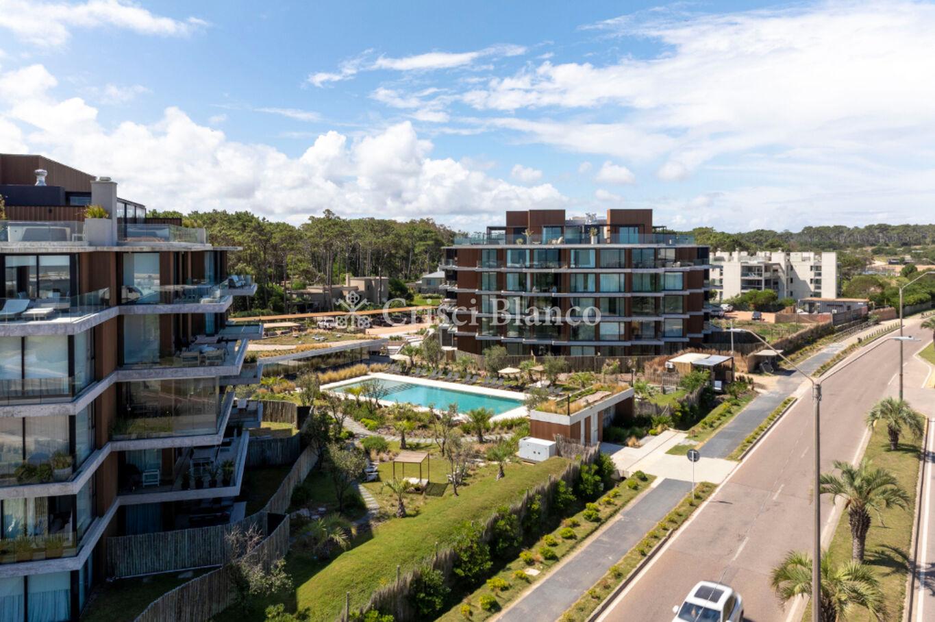 Dos torres, con apartamentos de 2, 3 y 4 dormitorios, con amplias terrazas privadas, vista al mar o bosque, unidades en planta baja que cuentan con parrillero y un amplio jardín de uso exclusivo.